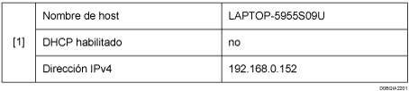 Compruebe el nombre del ordenador, el estado de activación/desactivación del servidor DHCP y la dirección IP y anote la información en [1] en la hoja de comprobación.