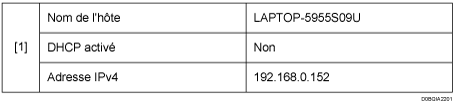 Vérifiez le nom de l’ordinateur, le statut activé/désactivé du serveur DHCP et l'adresse IP et notez ces informations sous [1] sur la fiche de vérification.