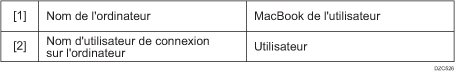 Cliquez sur [Logiciel] dans le volet gauche et notez le nom d’ordinateur affiché sous [1] et le nom d’utilisateur sous [2] sur la fiche de vérification.