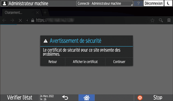 Vous pouvez régler les paramètres de façon à afficher un message d'avertissement à l'écran lorsqu'un utilisateur tente d'accéder à un site Web non fiable.