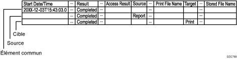 Imprime le « Résultat », le « Statut » et les informations d’entrée du journal de travaux des éléments communs. Lorsqu’il y a plusieurs sources, plusieurs lignes sont imprimées.