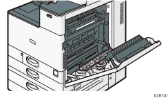 La zone se situant à l'intérieur du capot droit contient des surfaces chaudes. Lors de l'ouverture du capot droit pour retirer du papier, attendez quelques instants afin de laisser les parties chaudes refroidir avant d'effectuer la procédure.