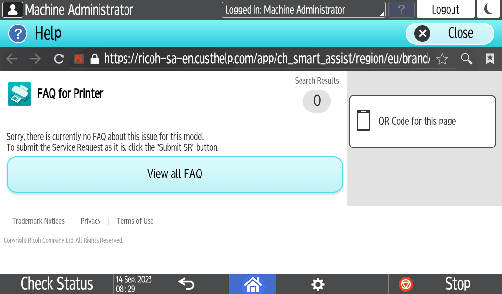 When you want to display the [Help] screen on your smart device, read the QR code displayed on the screen with your smart device.When the machine is connected to the Internet