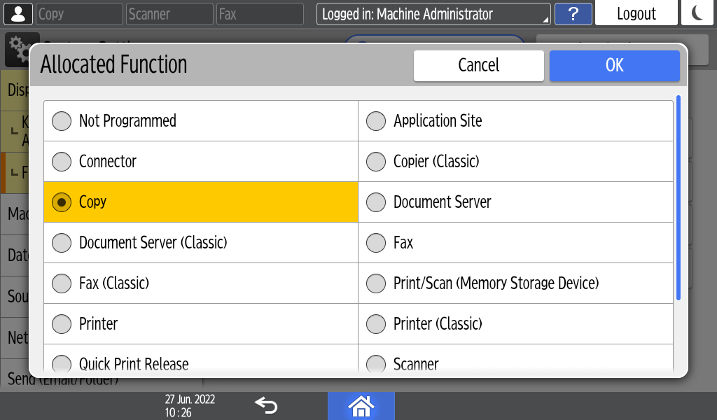By assigning frequently used functions to the function keys, you can switch between the modes without returning to the Home screen.