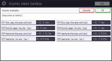 Los valores ajustados se guardan como ajustes de papel personalizados.