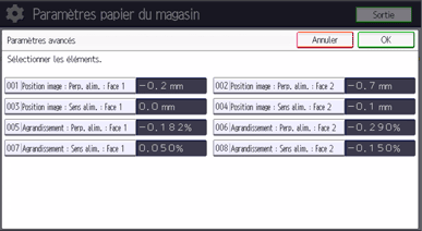 Les valeurs ajustées sont enregistrées comme paramètres de papier personnalisé.