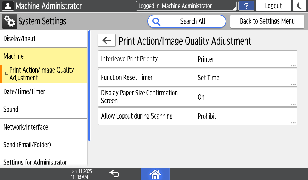 When [Printer] is selected for [Interleave Print Priority], a print job for the fax function has higher priority than a print job for the copy function.
