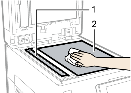 Smears or dust may appear on copied documents or scanned images when the exposure glass, scan glass, or ADF becomes dirty. Clean those parts.
