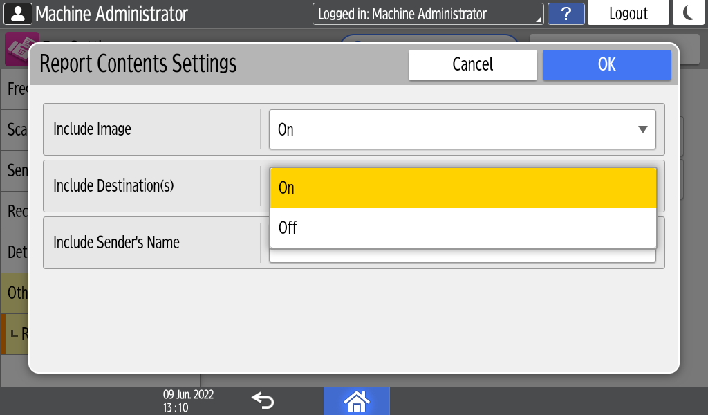 [Report Contents Settings].From the list next to Include Destination(s), select [Off].