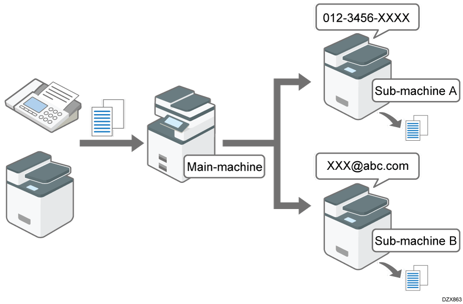 Register the sender of a fax as a Special Sender and assign a sub-machine to forward faxes received from the Special Sender.
