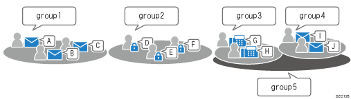 可以将已注册的目的地或用户添加到群组中。可以在层次结构中创建群组。