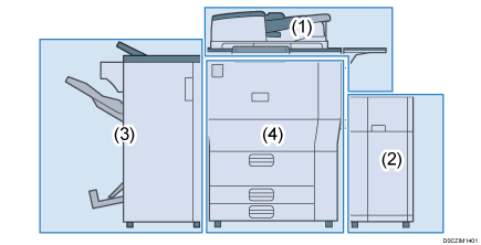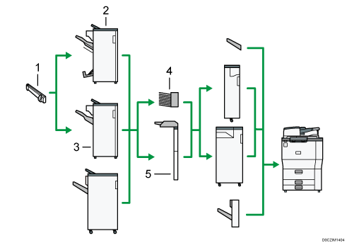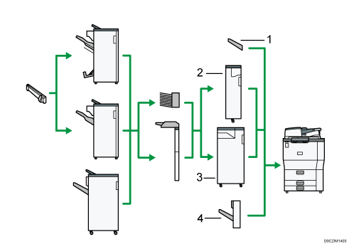 3 | Finisher SR4150 | 将多张纸分页、分类和装订。包含下面的纸盘: