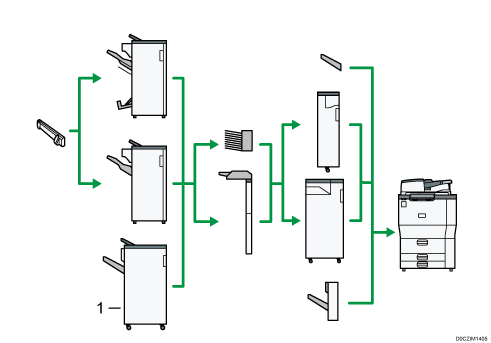 1 | Finisher SR4140 | 将多张纸分页、分类和装订。包含下面的纸盘: