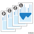 合并4原稿]将A3(11 × 17)尺寸的原稿复印到A4(81/2 × 11)尺寸的纸张上,复印比例会小于25%,并且部分图像可能无法复印。您可配置合并功能。使用以下项目。