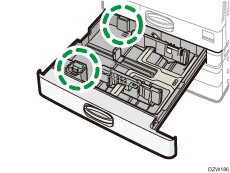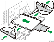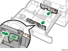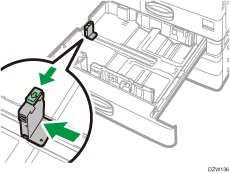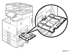 要装入大于A3的纸张,请将纸盘完全拉出,然后更改两个辅助侧挡板的位置。