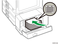 要将完全拉出的纸盘推回原位,请将纸盘直接推入。如果纸盘损坏,可能会导致卡纸。此外,如果您强行推动纸盘,纸盘的侧挡板可能也会移动。