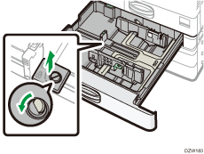 按下释放杆的同时,将侧挡板和末端挡板调整为纸张尺寸。