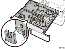 根据纸张尺寸调整侧挡板和末端挡板。当装入尺寸大于A3的纸张时,还要更改辅助侧挡板的位置。