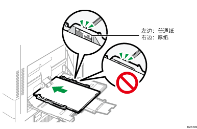 堆叠纸张的高度不要超过限制标记。如果装入的纸张超过限制标记,则打印的图像可能会倾斜或出现卡纸。