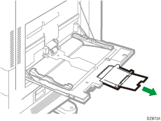 如果在取出卡纸时,纸张卡在纸盘和机器中间,请将纸盘完全拉出,然后取出纸张。