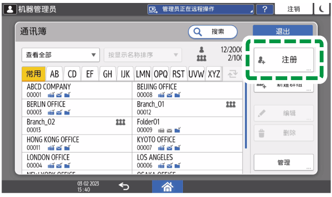 在地址簿界面上,按[注册]并输入用户名。