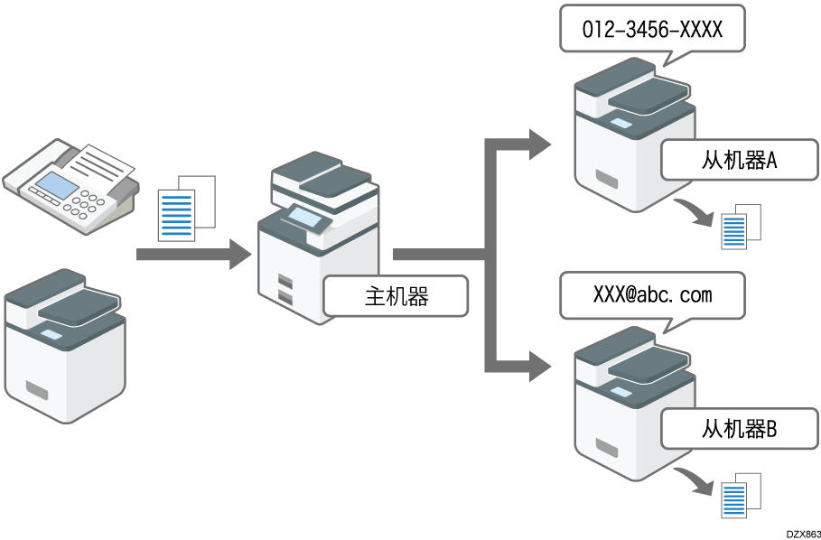 将传真的发件者注册为特殊发件者,并分配用于转发特殊发件者发送传真的子机。