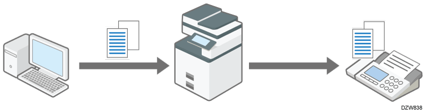 通过在计算机上从应用程序进行打印时将局域网传真指定为打印机驱动程序,您可以通过传真直接发送文档。