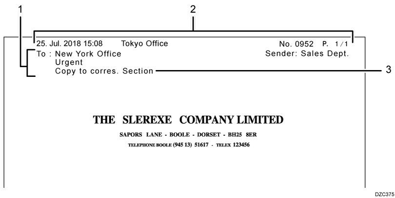 您可以在目的地收到的页面上以及通过传真发送的原稿图像上打印目的地名称、传真头和标准消息。事先指定要在收到的页面上打印的信息。