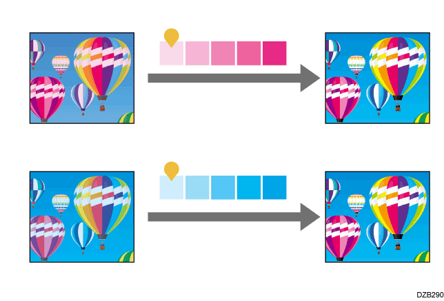 例如,原稿的蓝色部分可以在复印时替换为橙色。一次最多可以替换四种颜色。