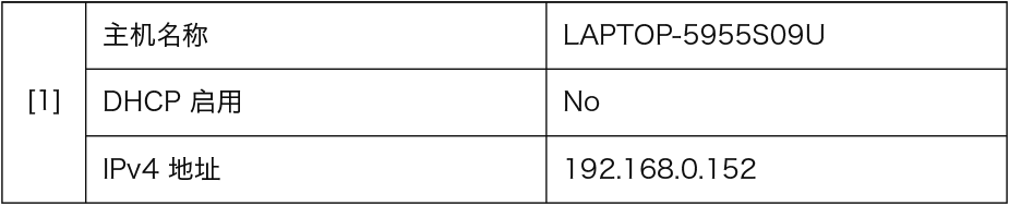 请查看主机名称,DHCP服务器的启用/禁用状态和IP地址,以及检查表的[1]中记录的信息。
