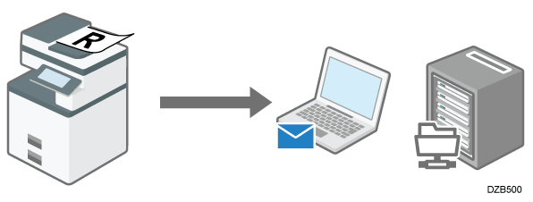 扫描原稿并将扫描的数据发送到某个电子邮件地址或计算机上的共享文件夹,或将数据保存到 USB 闪存设备上。
