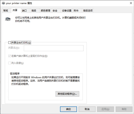要与使用其他Windows版本的用户共享打印机,请单击[其他驱动程序]。
