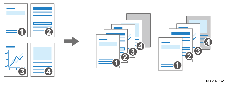 Insereix fulls en blanc abans de les pàgines especificades. També podeu configurar la màquina per imprimir les dades d'una pàgina especificada a les pàgines designades com a capítols.