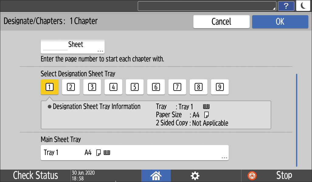 Seleccioneu Safata fulls designació: seleccioneu la safata d'entrada per on alimentar els fulls designats especificats al pas 3.