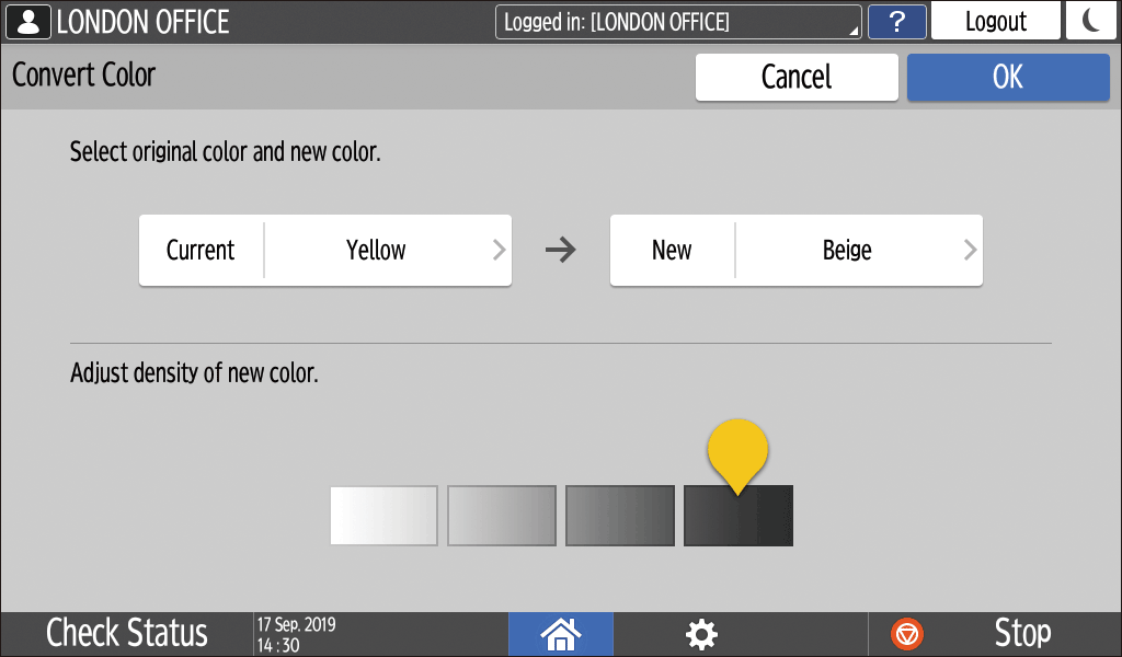 Registreu una combinació de color abans i després de la conversió. Per exemple, la part blava de l'original es pot substituir per taronja a l'hora de copiar. Es poden substituir fins a quatre colors alhora.