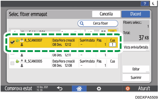 Seleccioneu el document que voleu verificar i després premeu [Vista prèvia/Detalls].