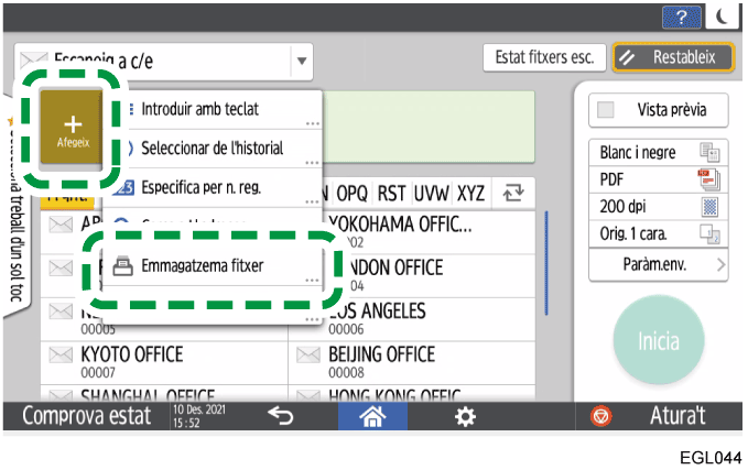 Establiu el destinatari al qual enviar els documents alhora que es desen.Col·loqueu l'original.