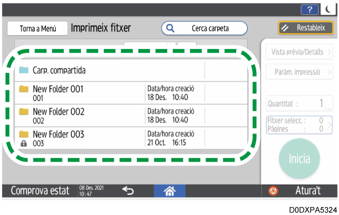 Premeu [Cercar carpeta] per buscar una carpeta pel nom o el número de carpeta.