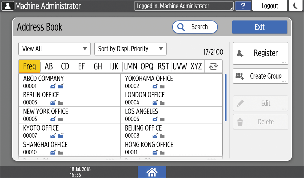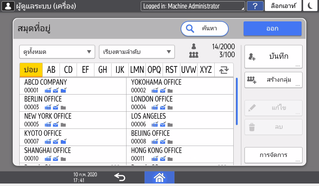 สามารถเริ่มต้นการทำงานได้โดยการกด [Address Book] ในหน้าจอ Home