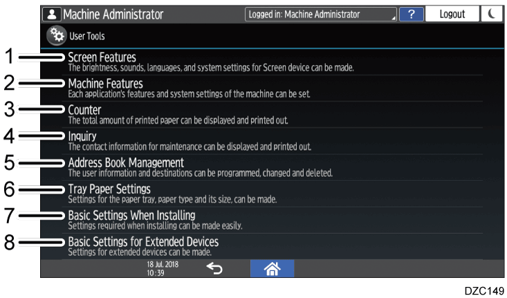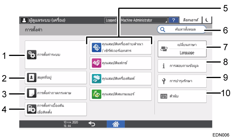 กด [การตั้งค่า] ในหน้าจอ Home เพื่อเปลี่ยนการตั้งค่าของเครื่อง ให้แก้ไข Address Book หรือยืนยันข้อมูลต่างๆ
