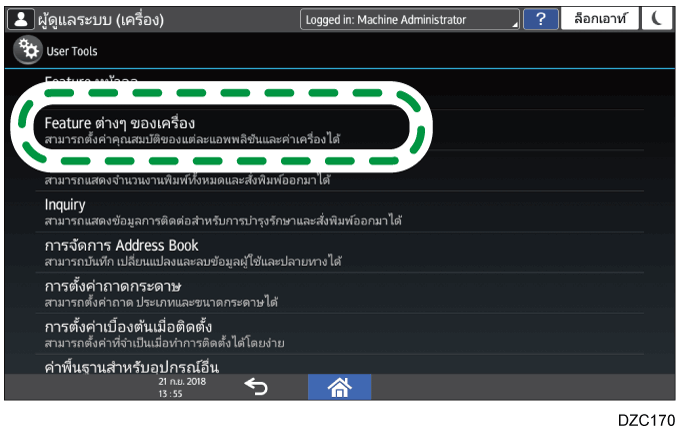 ดูรายละเอียดได้ที่คู่มือการใช้งานและบำรุงรักษาเครื่อง (User Guide)Feature ต่างๆ ของเครื่อง
