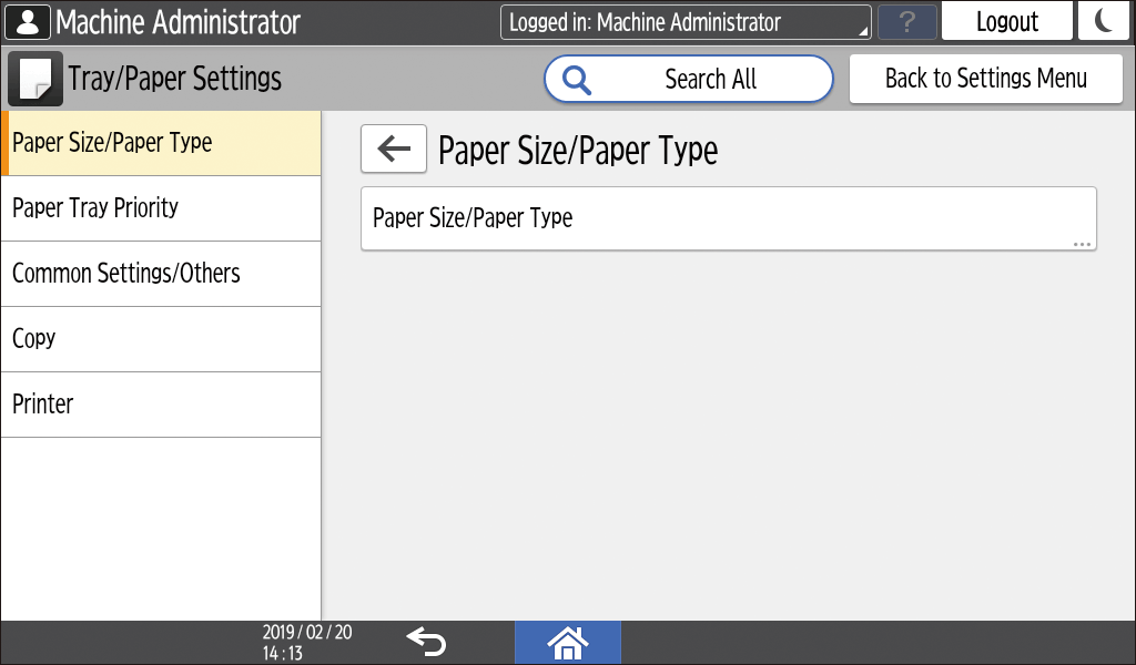คุณสามารถเปลี่ยนประเภทหน้าจอ "การตั้งค่า" จากเมนูผู้ดูแลระบบใน "การตั้งค่า" ขั้นตอนจะแตกต่างกันไปตามประเภทของหน้าจอที่เลือกไว้ในขณะนั้น