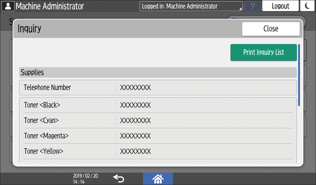 ยืนยันผู้ติดต่อสำหรับขอรับบริการซ่อมเครื่องหรือสั่งซื้อวัสดุสิ้นเปลืองการบำรุงรักษา