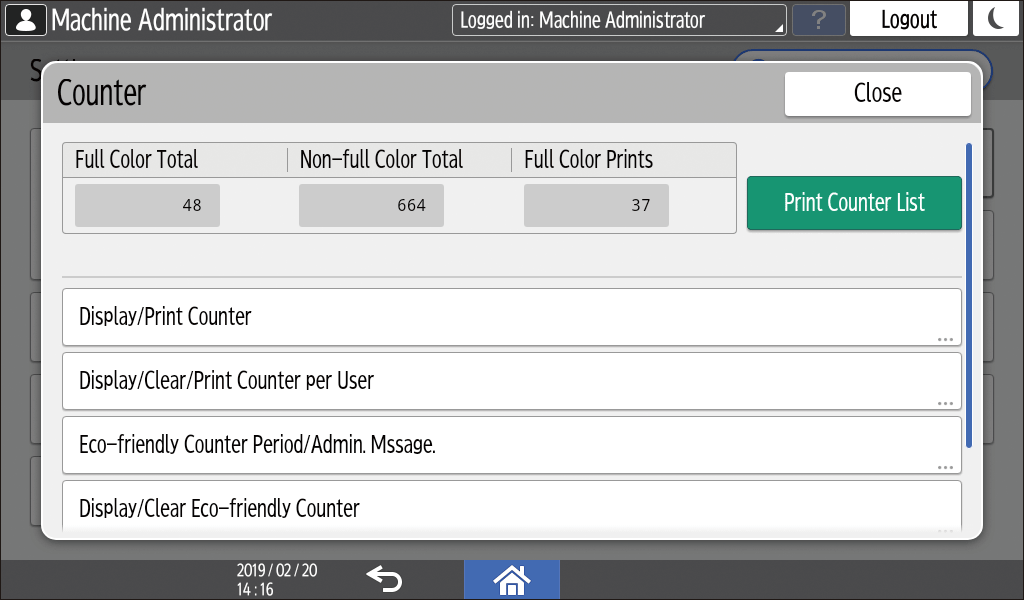 ดูรายละเอียดได้ที่คู่มือการใช้งานและบำรุงรักษาเครื่อง (User Guide)Counter