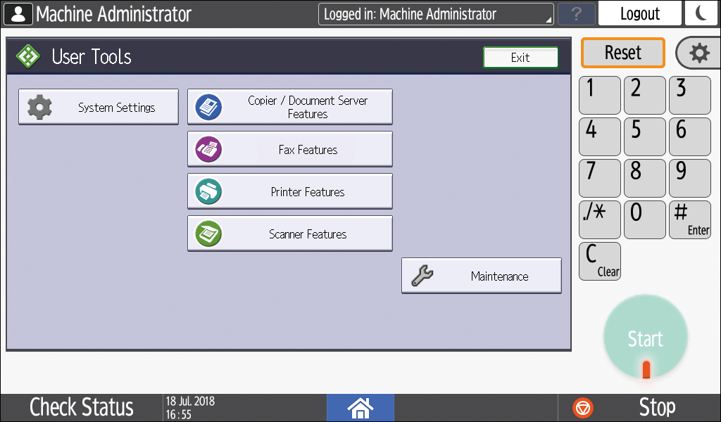 เปลี่ยนการตั้งค่าสำหรับเครื่องและการตั้งค่าสำหรับฟังก์ชันการทำสำเนา, เซิร์ฟเวอร์เอกสาร, แฟกซ์, พรินเตอร์ และสแกนเนอร์