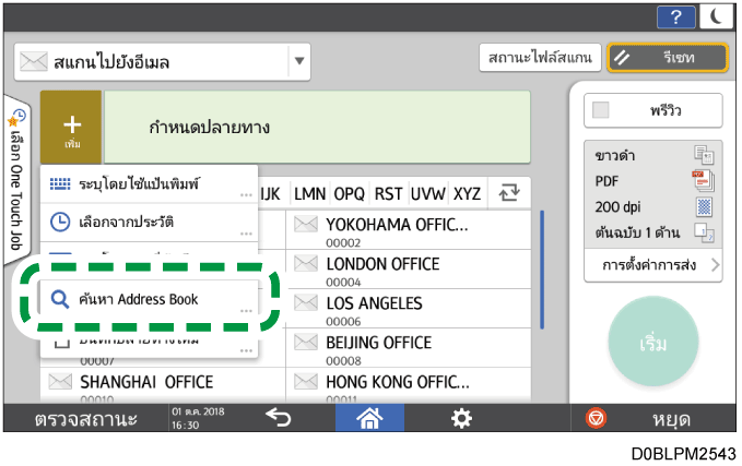 บนหน้าจอสแกนเนอร์ แล้วเลือก [ค้นหา Address Book]