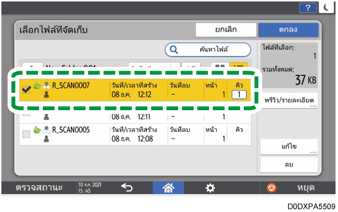 เลือกเอกสารที่คุณต้องการลบ จากนั้นกด [ลบ]