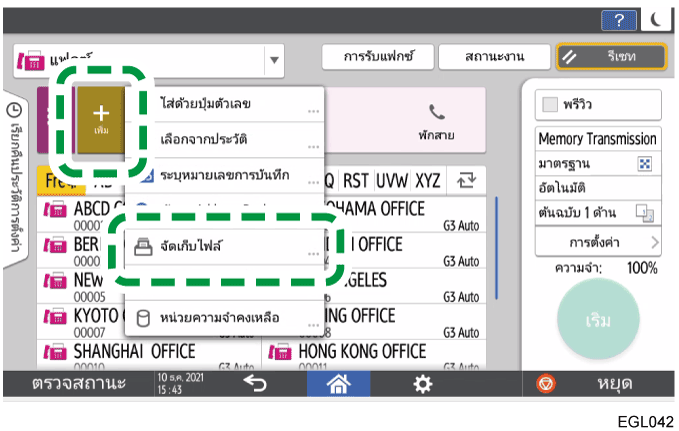 การบันทึกเอกสารจากหน้าจอ แฟกซ์