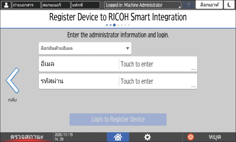 กด [ล็อกอินเพื่อลงทะเบียนอุปกรณ์]