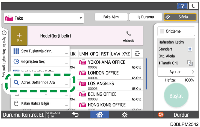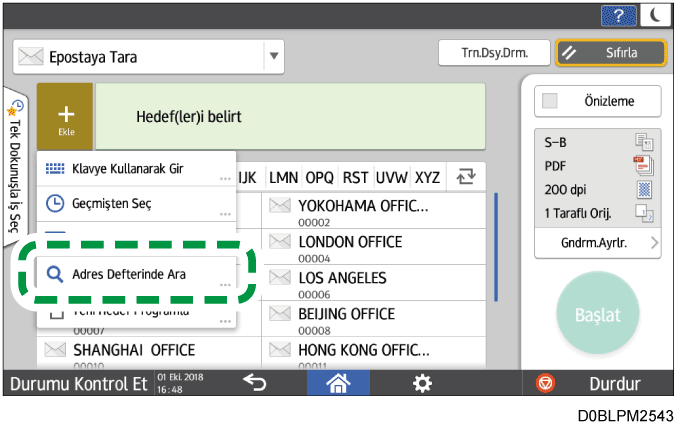 Hedef ararken makinenin adres defterini ve makineye kayıtlı tüm LDAP sunucularını arama hedefi olarak belirleyebilir ve arama sonuçlarını birlikte görüntüleyebilirsiniz.